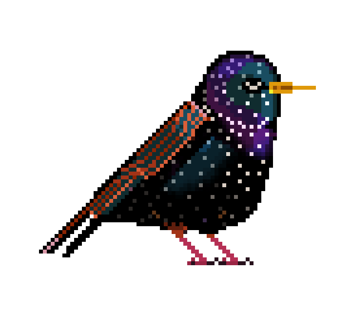 The starling looks a bit like a stocky little blackbird, but sleeker, more jittery… and above all, it sparkles.