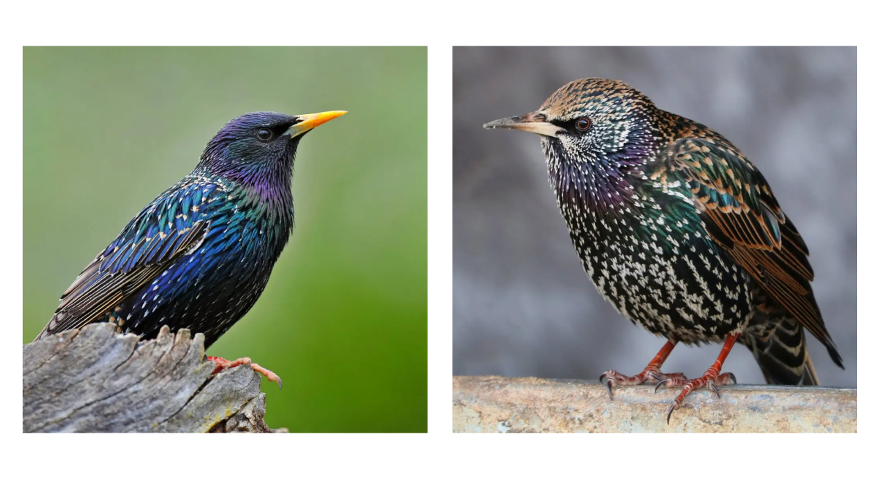 (Visual comparison: starling in breeding plumage on the left vs. winter plumage on the right)